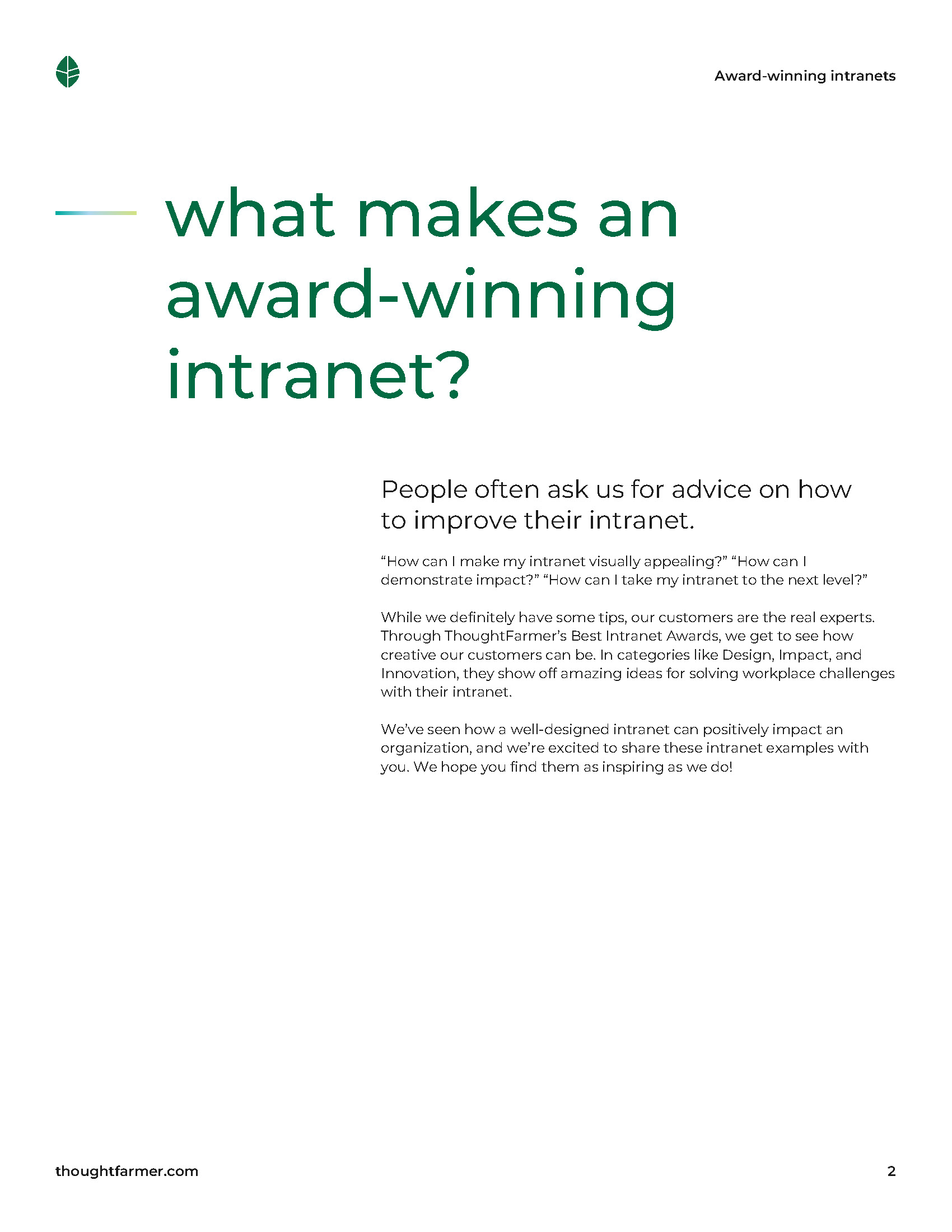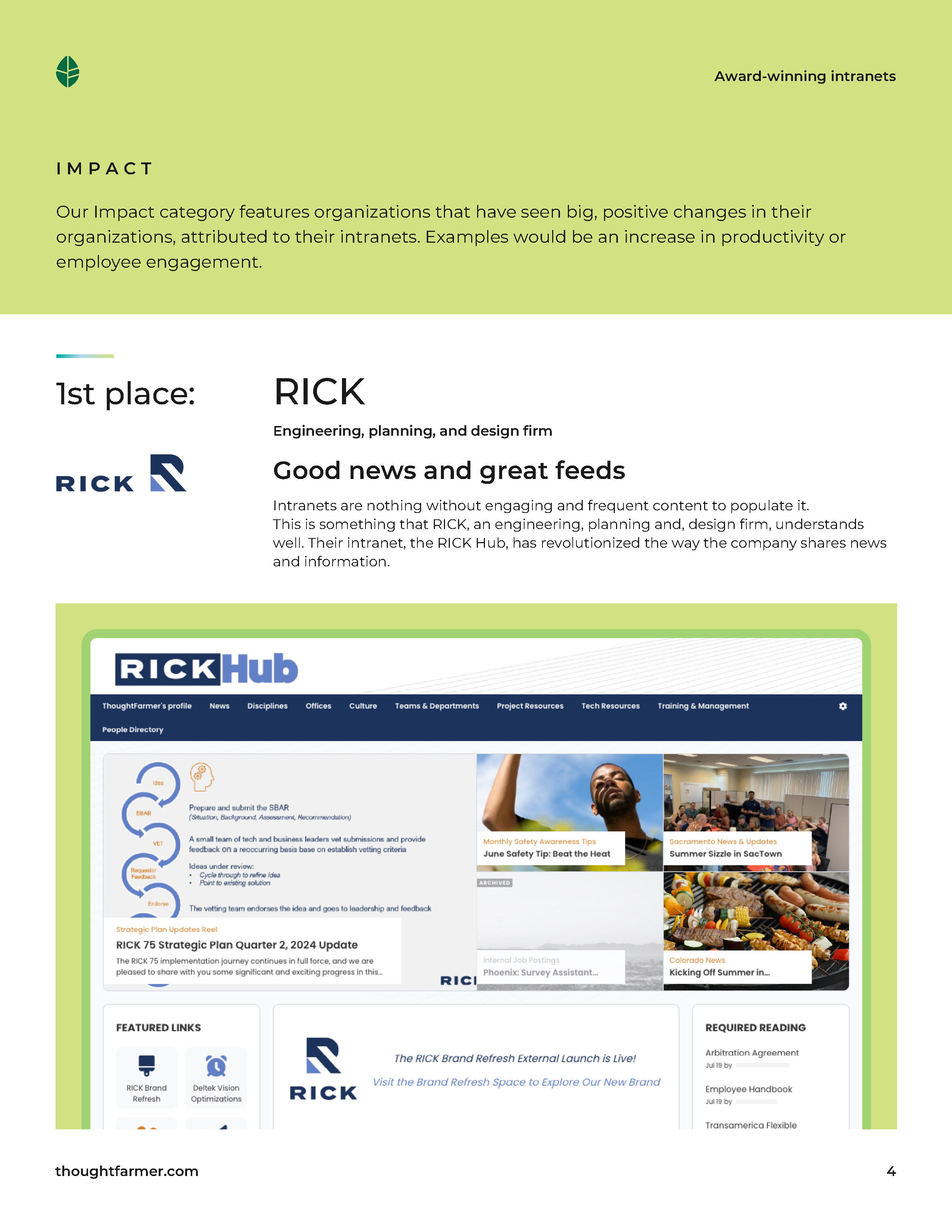 The Impact category features organizations that have seen big, positive changes in their organizations, attributed directly from their intranets.