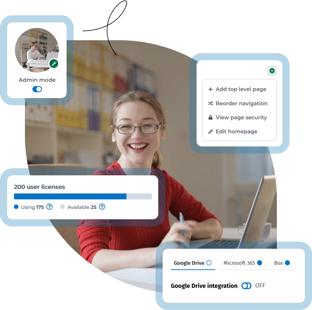 We handle hosting and upgrades, you manage your intranet.
