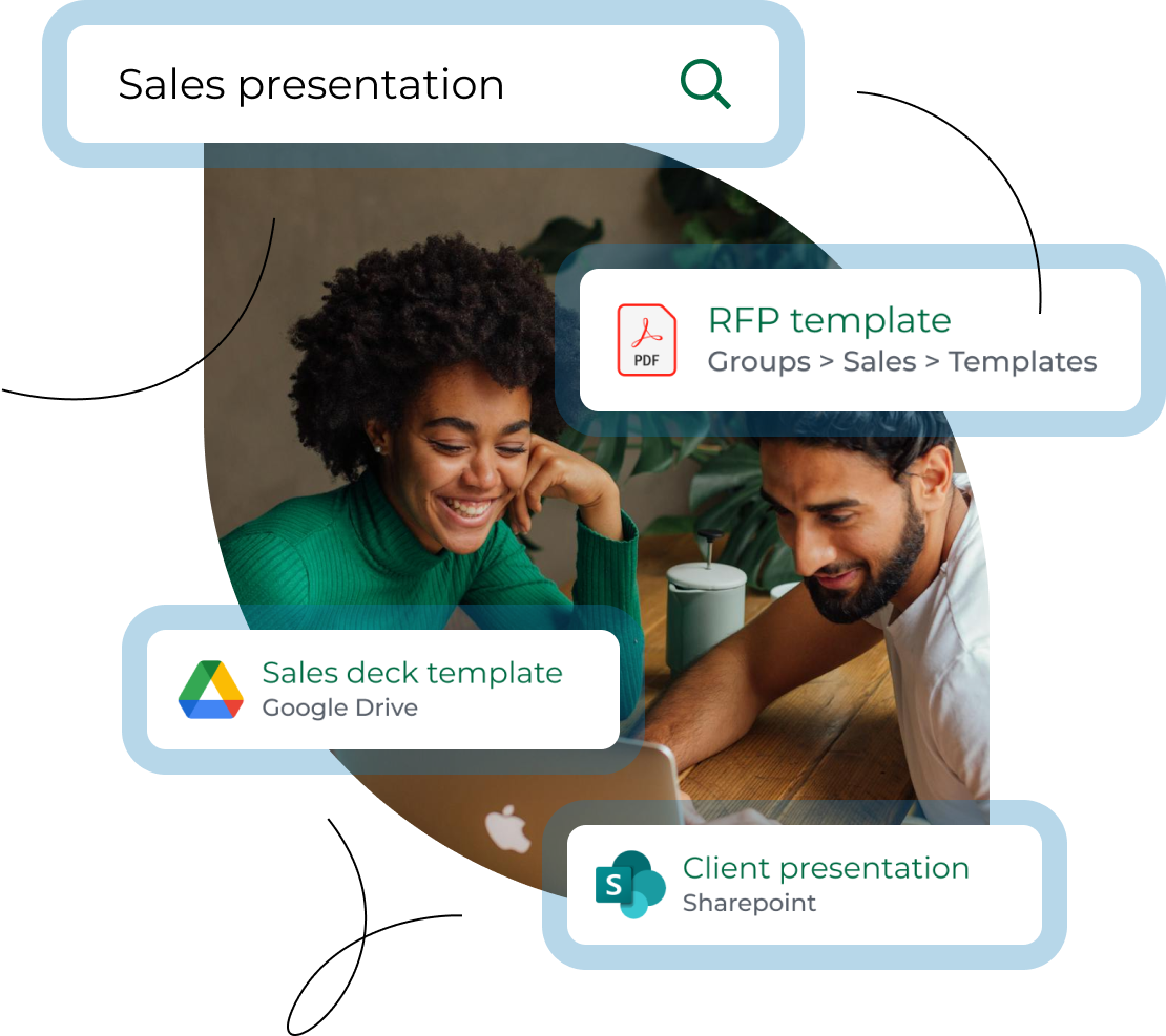 Our search uses advanced algorithms to prioritize results based on relevance. Features like Search-as-You-Type, “Best Bets,” and scoped search help your team quickly find the most accurate and useful information.